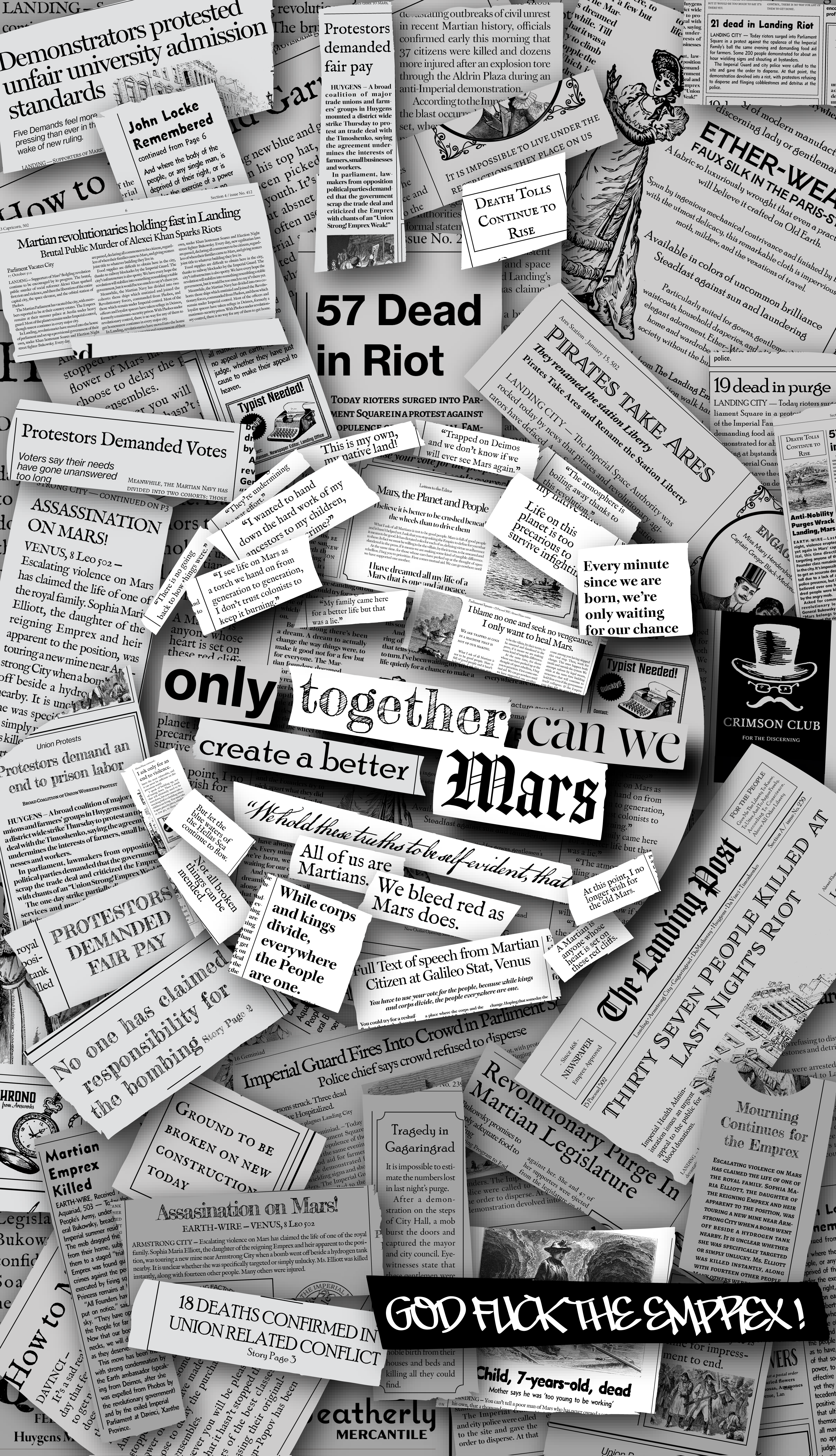 When embedding the collage in the ebook for Under False Colors, I was disappointed to find I was allowed only a very few characters for the alt text. Since the collage was composed almost entirely of text, that wasn’t enough.